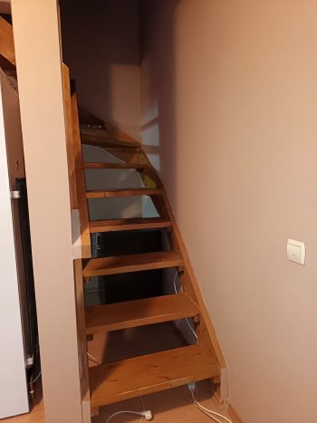 La primul nivel regăsim un living luminos, bucătărie separată, baie și un spațiu generos sub scară, ideal pentru depozitare sau amenajare după preferințe.