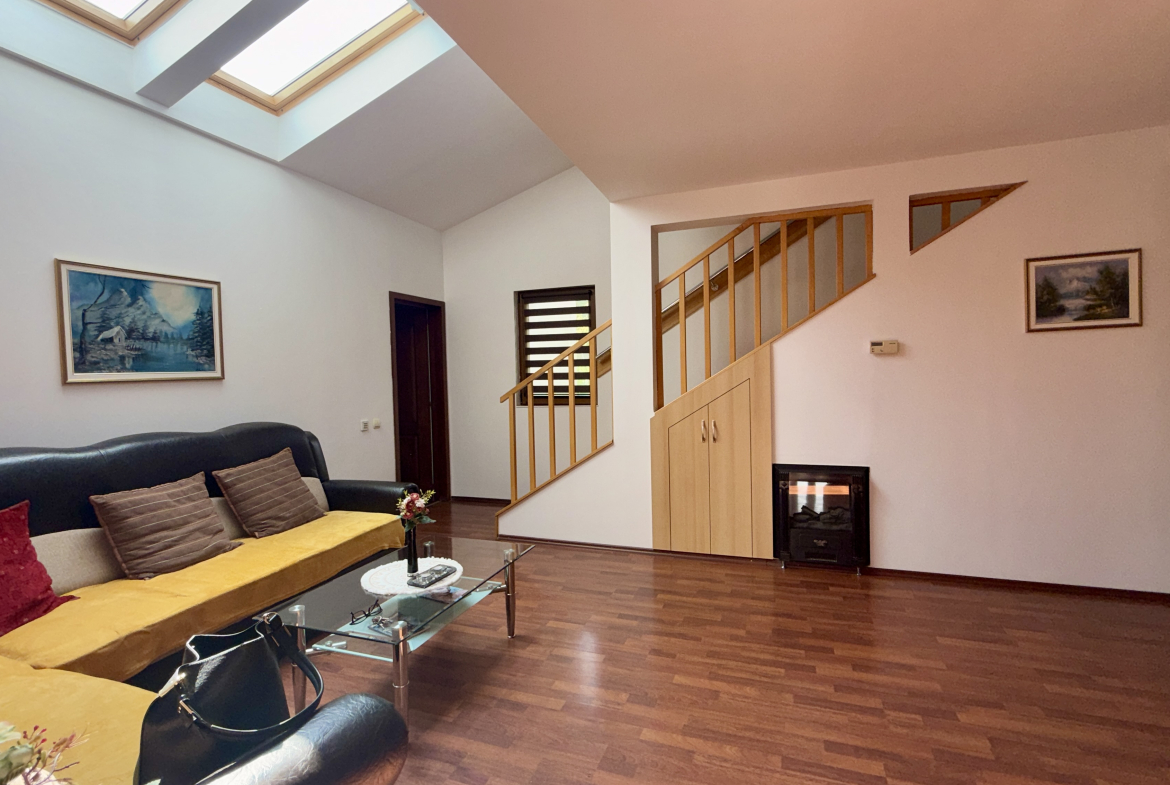 • Compartimentare practică, cu living spațios și luminos, definit de tavanul înalt și luminatoare moderne